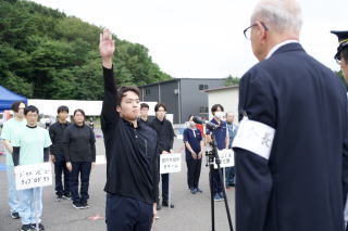 今年は田村市・小野町・三春町の事業所から、1号消火栓の部に8チーム、2号消火栓の部に3チーム、消火器の部に6チーム、合計17チーム50名が参加し迅速で規律ある操法が実施されました。どのチームも「自分たちの職場は自分たちで守る」を合言葉に、チーム一丸となって操法に取り組んでいました。