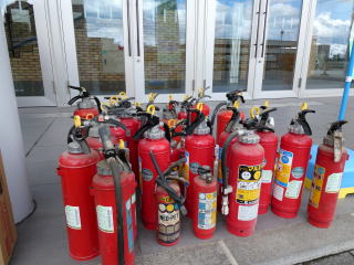 今回も、当協会消防設備部会 点検済表示推進委員会方部会のご協力のもと、郡山消防署管内の出先等11ヶ所で老朽化(廃)消火器の回収事業を実施し、